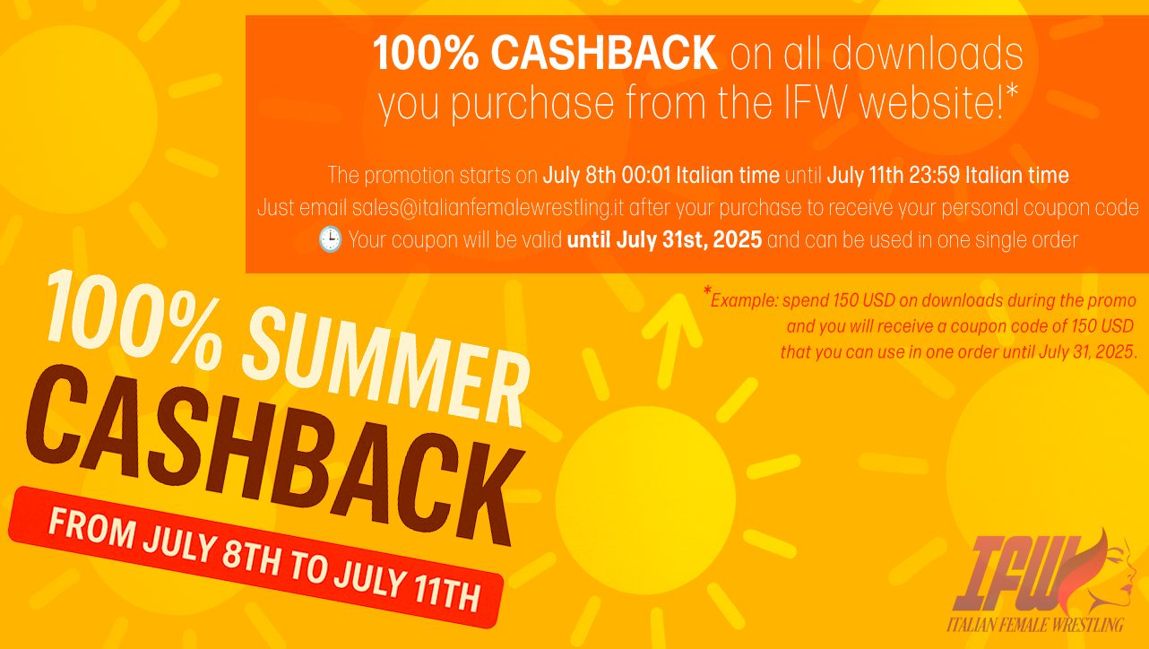 - Only downloads purchased directly from our official website (https://italianfemalewrestling.com/) qualify for the cashback. Purchases from IFW Club subscriptions and LoyalFans are not eligible.